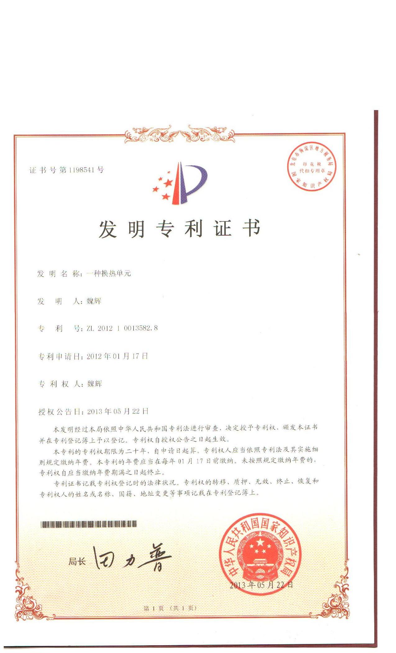 新专利CN201210013582.8 获得授权