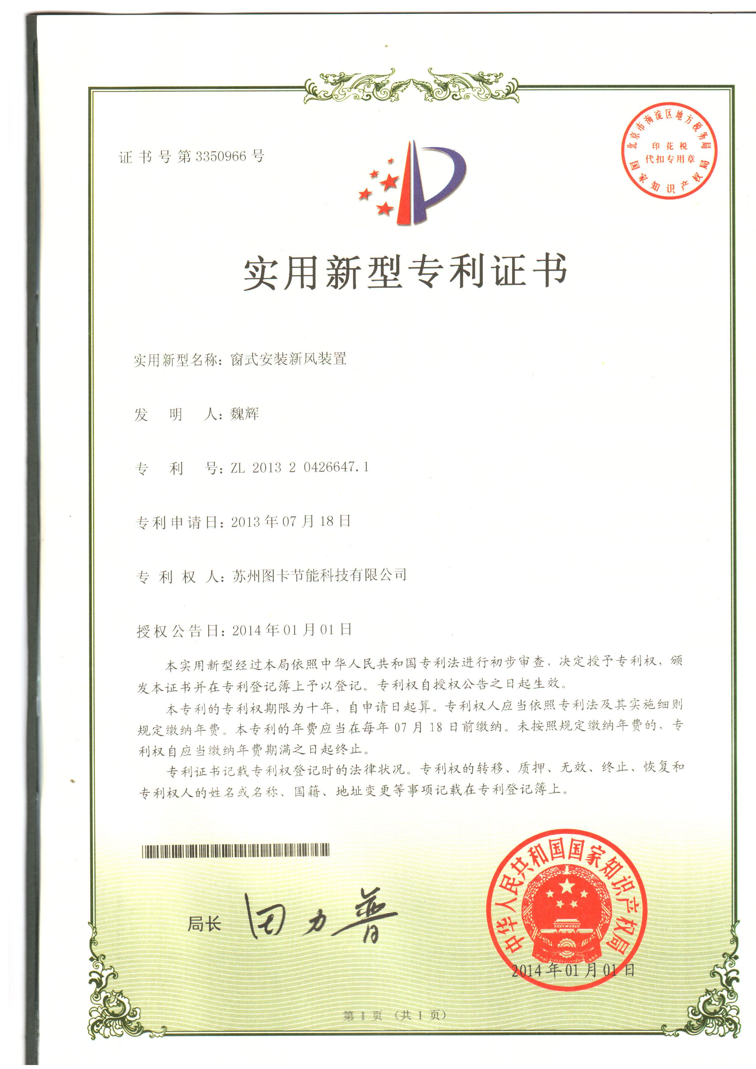 新专利201320426647.1获得授权